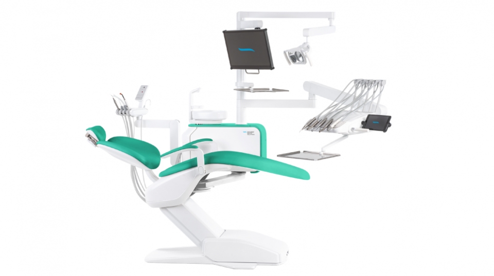 | 3.4 Integrovaný displej | Ano, speciální tablet v držáku stolku lékaře s možností vyjmutí k prezentaci pacientovi, dalším úkonům a plnému ovládání zubní soupravy |